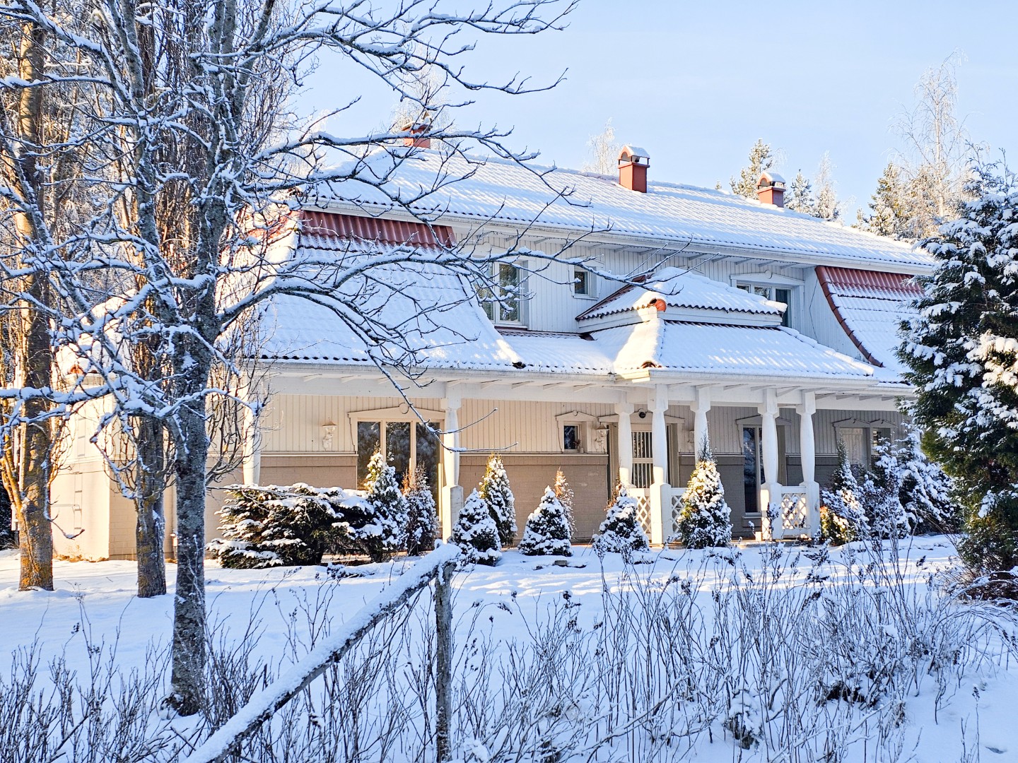Egnahemshus | 1949/1970 | ca 290 m2 | 6 r, 2 k, 2 wc, bdr, b | Fähus/stall | Tomt 1,8 h med åker/hästhagar